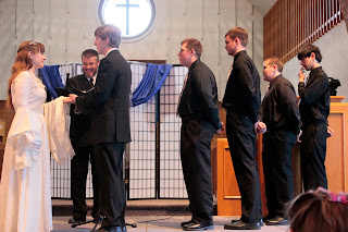 This past Saturday, we were blessed to not only attend but be part of Colton Evans and Raquel Muttons' wedding! It was simply amazing to see our Church family come together to bless both of these families, whether it was in the background cleaning up, fixing hair, to taking a BUNCH of photos to help them remember this brilliant and special day! I know I had a marvelous time, witnessing a covenant being made, great feasting, dancing with my baby brother, laughing with friends and just having a ball, and I'm sure others would say the same! So, enough of my ramblings and on with the pictures!